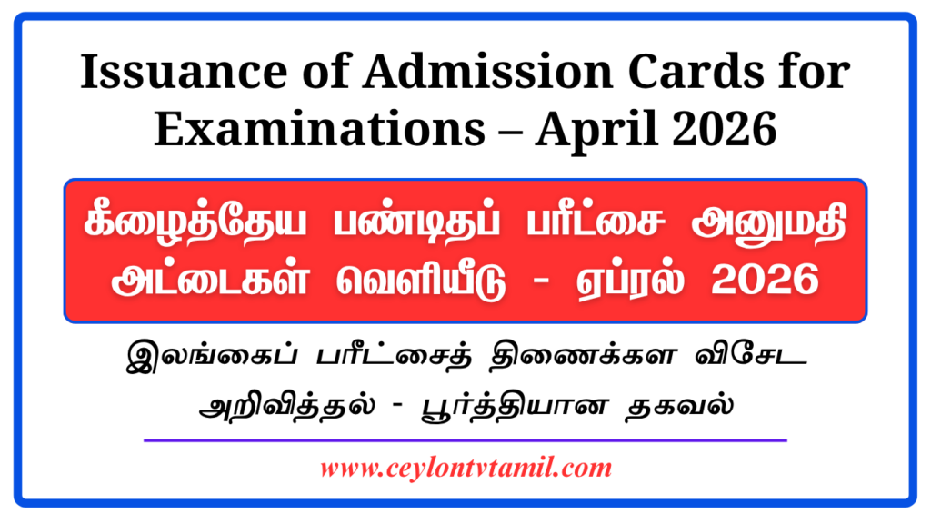 The Department of Examinations – Sri Lanka has officially announced the issuance of admission cards for the upcoming Oriental Pandit Examinations scheduled for April 2026. These examinations, conducted on behalf of the Oriental Studies Society of Sri Lanka, are essential for students pursuing traditional linguistic and degree-level studies in the country.