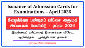 අවසාන දිනය: 2026 මැයි මස 04 වනදා හෝ ඊට පෙර ලැබෙන සේ එවිය යුතුය.